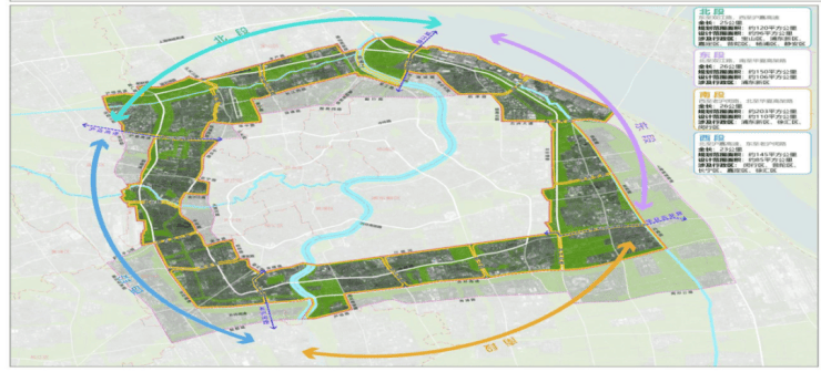 2020 年 7 月浦东新区政府发布了“金色中环发展带”的“十四五”规划方案,浦东新区地界内重点穿过3+5个重点区域,三个中心区:前滩中央活动区、张江副中心、金桥副中心;五个潜力地区:沪东船厂、张江集电港、御桥区域、新杨思地块(高青区域)、筠溪小镇(三林区域)。成效明显,初步目标以达成。