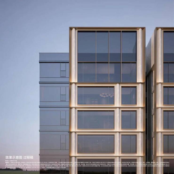 材质:局部温润石材、仿铜铝板、仿石铝板及局部仿石涂料,竖向铝板提升品质感